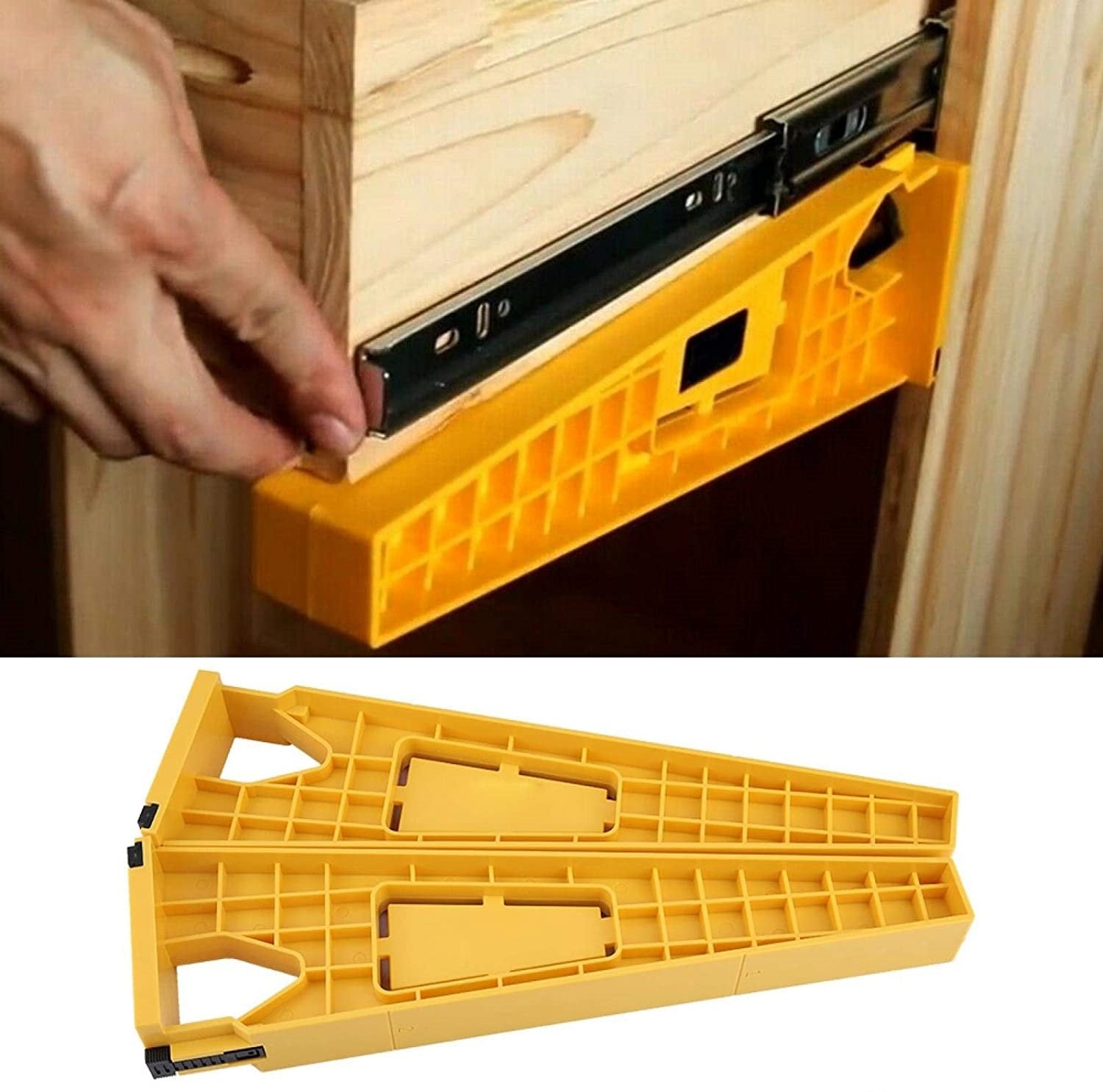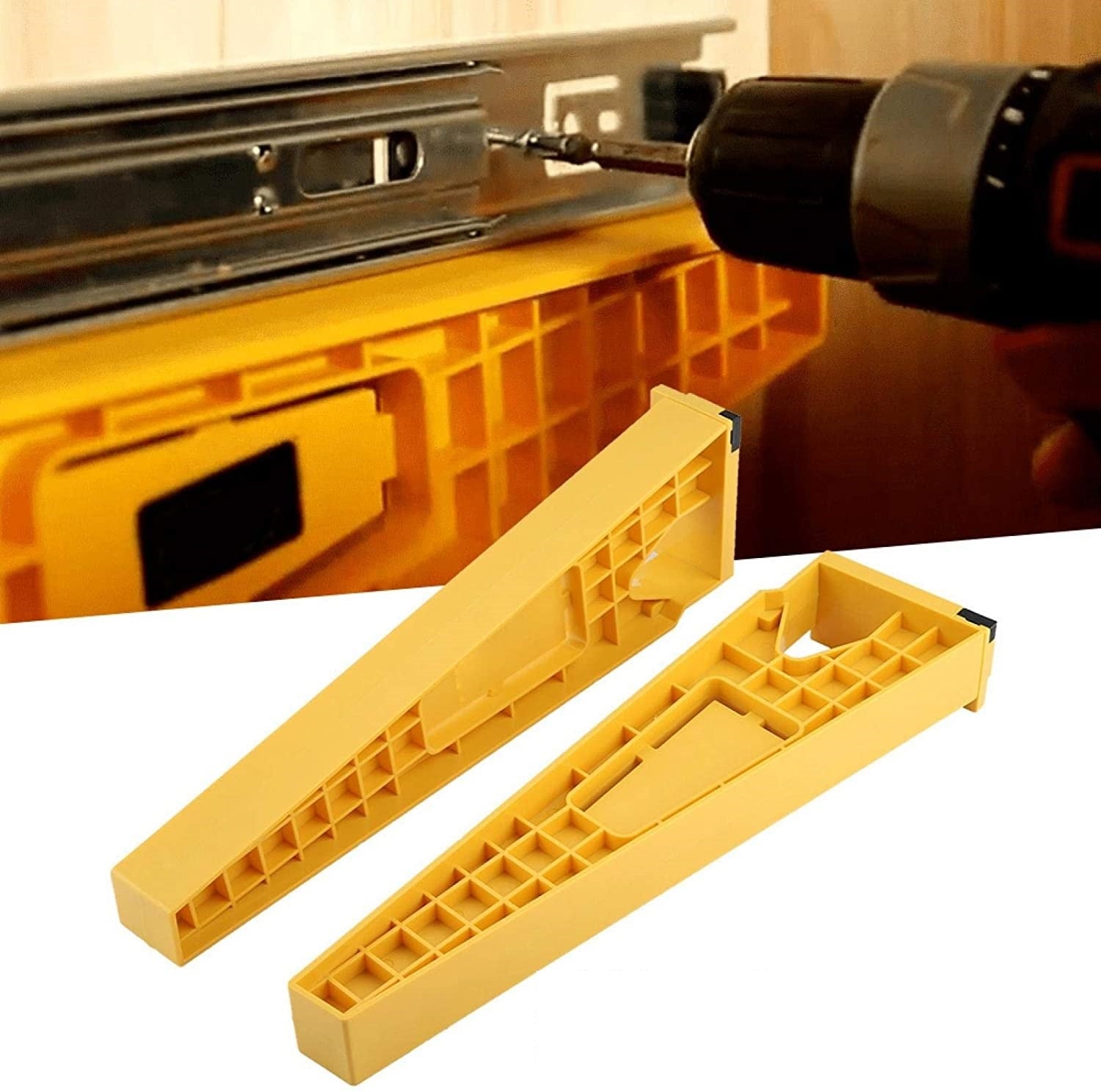 - This woodworking support tool is designed for positioning the drawer track, and it is useful for drawer track installation.